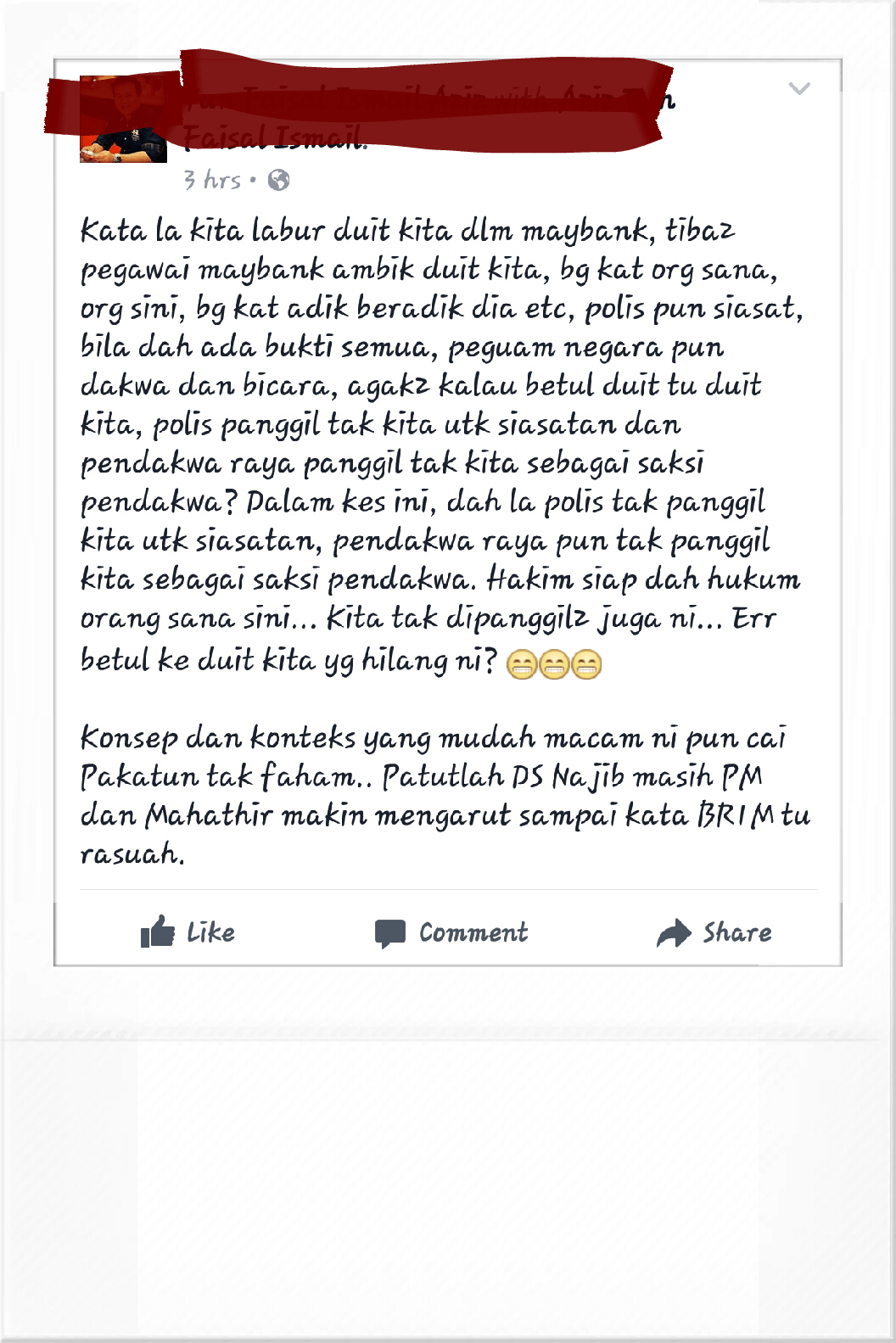Kamu ingat pendapat itu, ada kebenarannya kah dan dengan itu PM Najib tidak terlibat dalam skandal 1MDB?